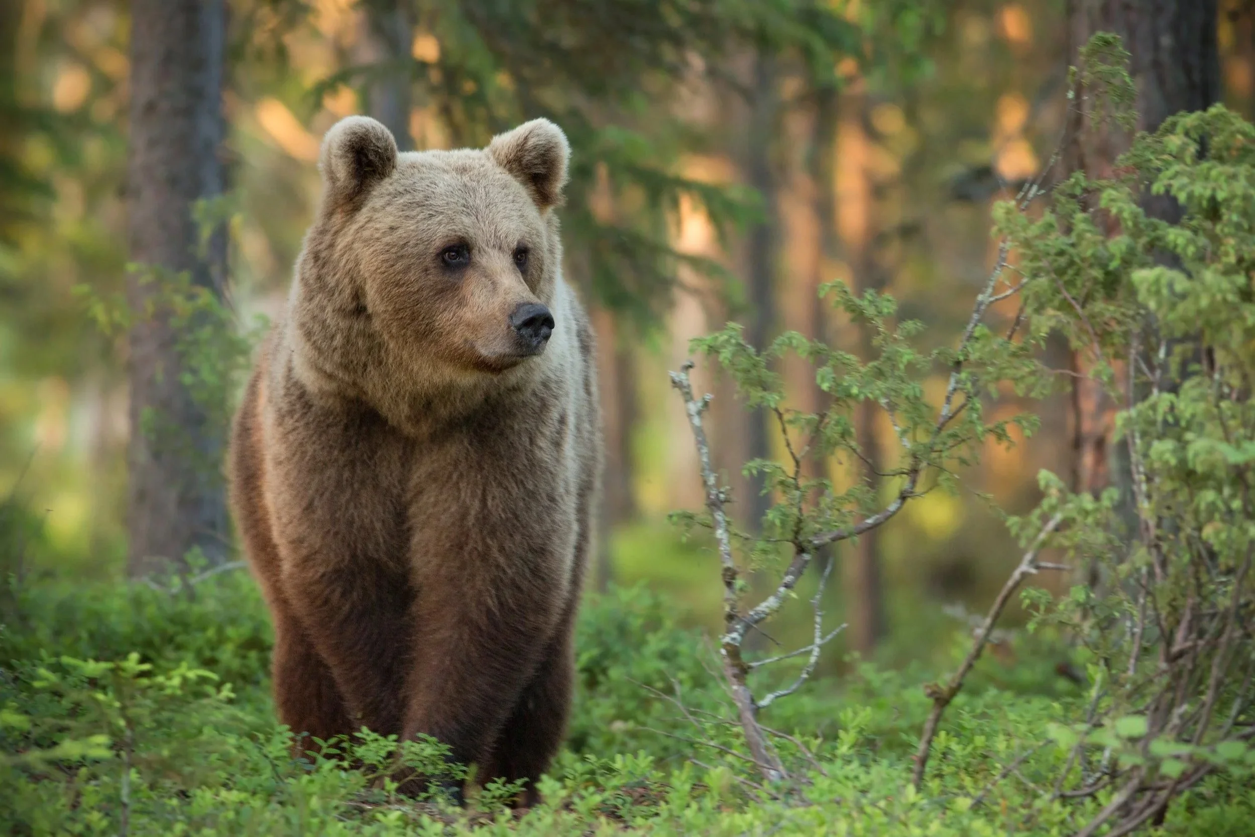 Nestled deep within the remote wilderness of eastern Finland, Kuikka Lodge is our base for an exceptional week of boreal wildlife photography. Timed to coincide with either the vibrant greens of midsummer swampland or the rich autumn golds of October in the vast Taiga forest, this dedicated photography tour is designed to maximise opportunities to capture Europe’s most iconic predators: Brown Bear, Wolverine and Wolf. We will work from a network of purpose-built photography hides in the heart of the forest and swampland. We will spend afternoons and evenings immersed in true wilderness, waiting for intimate encounters with these elusive species in one of Europe’s last truly wild landscapes.